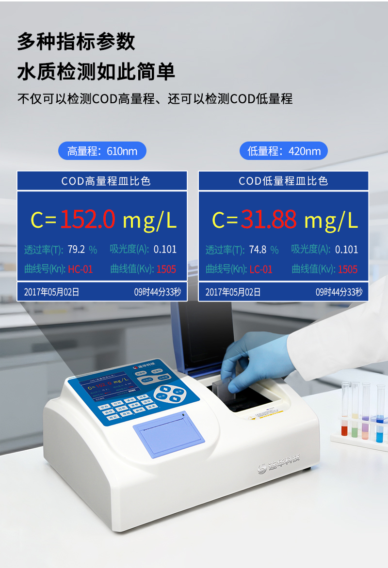 2、測定COD高量程、COD低量程水樣,還同時支持皿比色和管比色兩種比色方式;