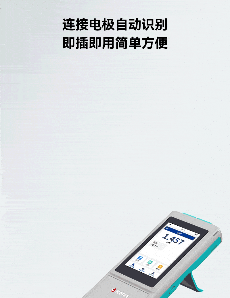 3、采用全數字電極,連接電極自動智能識別,支持自動溫度補償,有效避免環境溫度影響,提高測值精準度和穩定性;