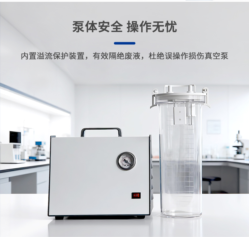 7、過濾系統(tǒng)帶溢流保護裝置,可防止誤操作導(dǎo)致廢液流入真空泵;