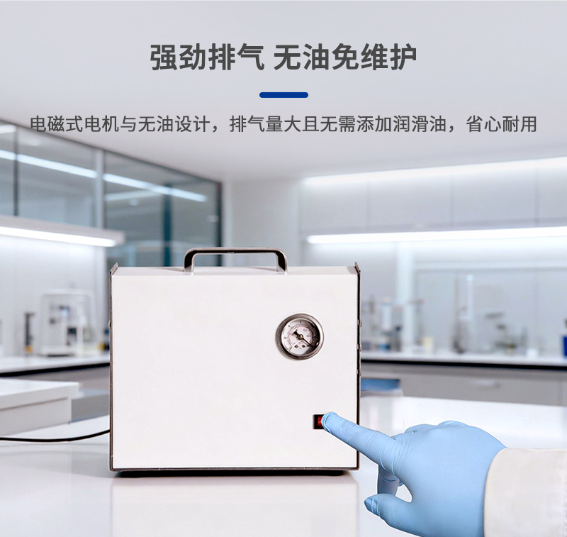 8、真空泵采用電磁式電機,活塞直線往復(fù)運動產(chǎn)生壓縮氣體,排氣量大;